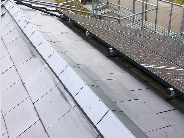 今回はそうした板金部分をすべて撤去し、屋根に使用されている「平板瓦」と同じ部材に交換する工事を行うことになりました。